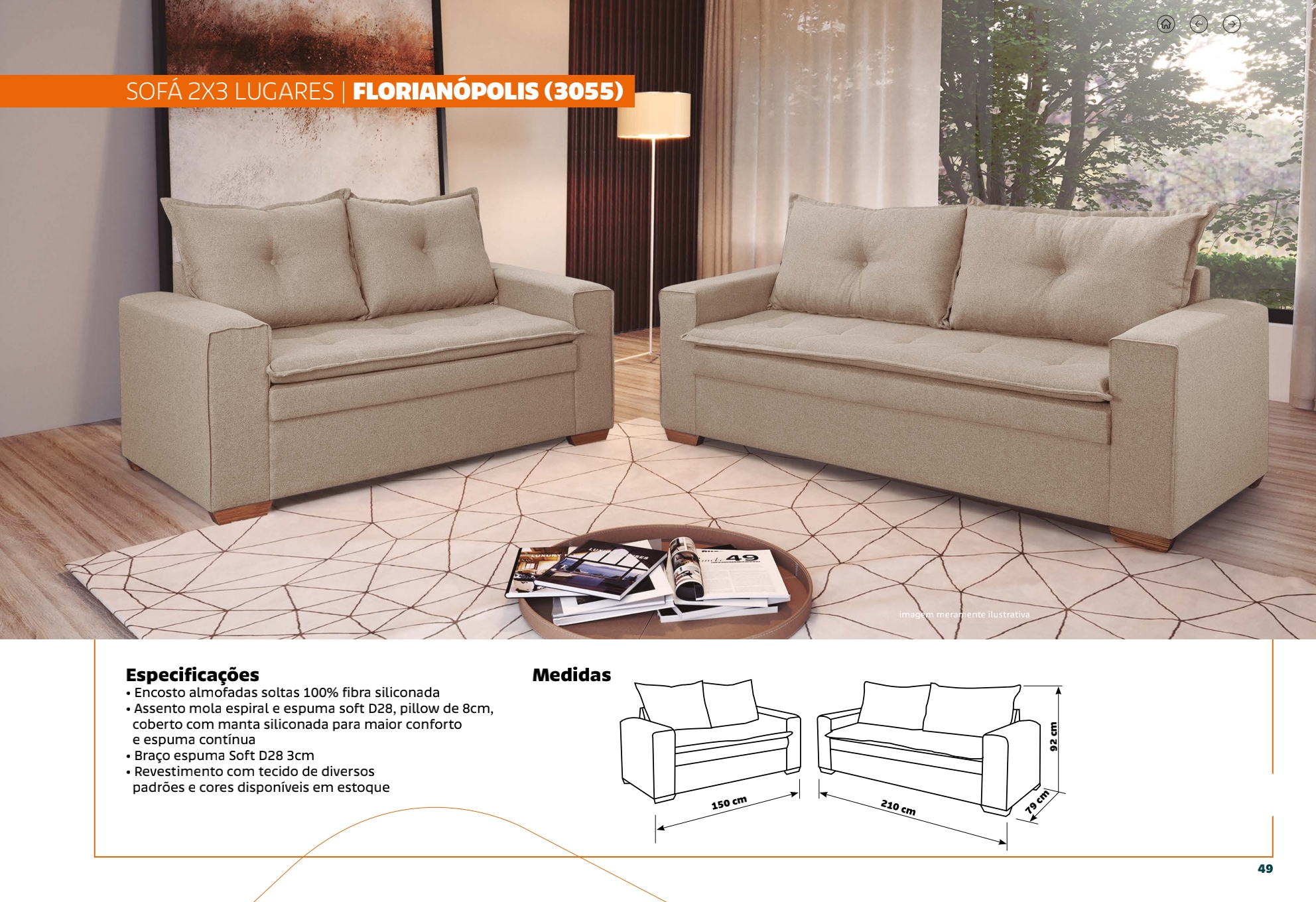 Transforme sua sala de estar em um espaço acolhedor e elegante com o Jogo de Sofá 2 e 3 lugares Florianópolis (3055). Não perca a oportunidade de elevar o seu ambiente com este móvel incrível!